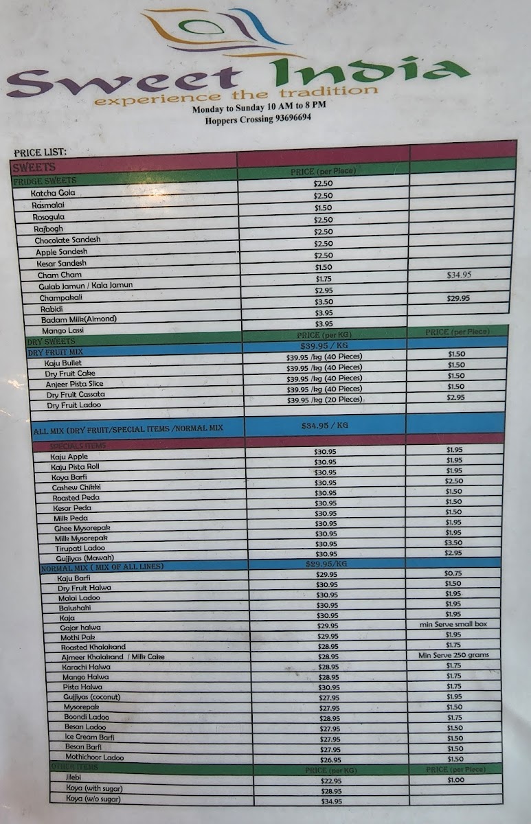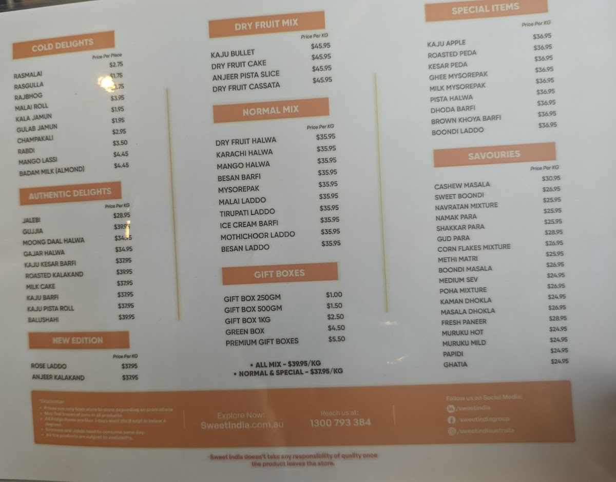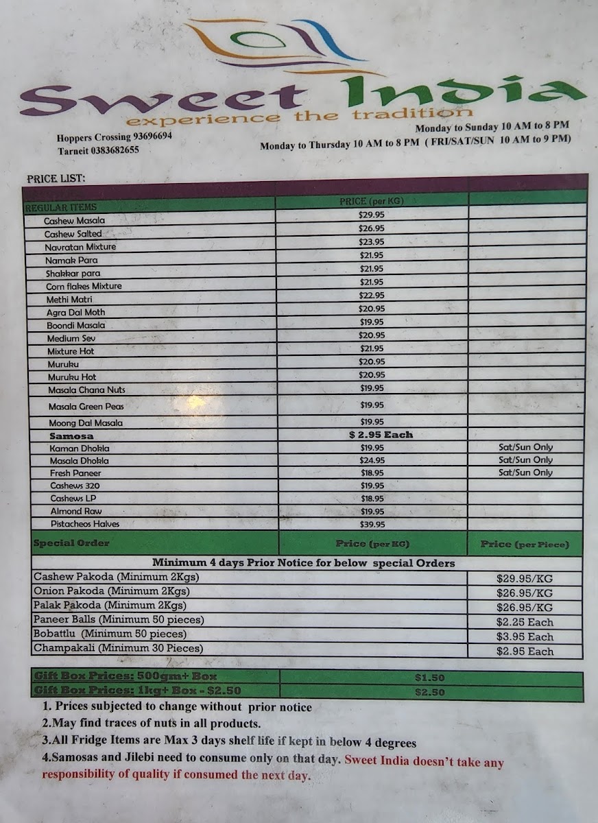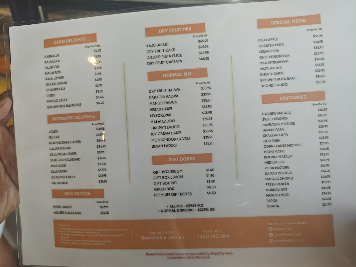 Introducing the Menu at Sweet India Tarneit